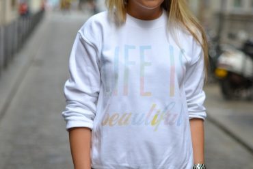 Sweat Outfit Of Love (soldé en moment) via Rad / Short Cache Cache / Sneakers Stan Smith…